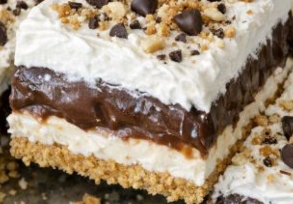 Cover the pan tightly with plastic wrap or foil and refrigerate for at least 8 hours, or overnight if you can. This resting time lets the graham crackers soften into a cake-like texture.