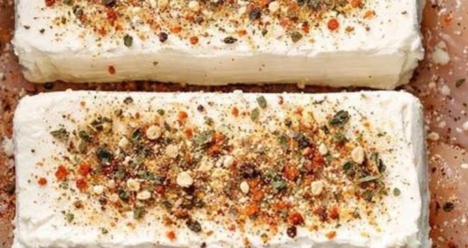 3. Place the block(s) of cream cheese on top of the chicken.