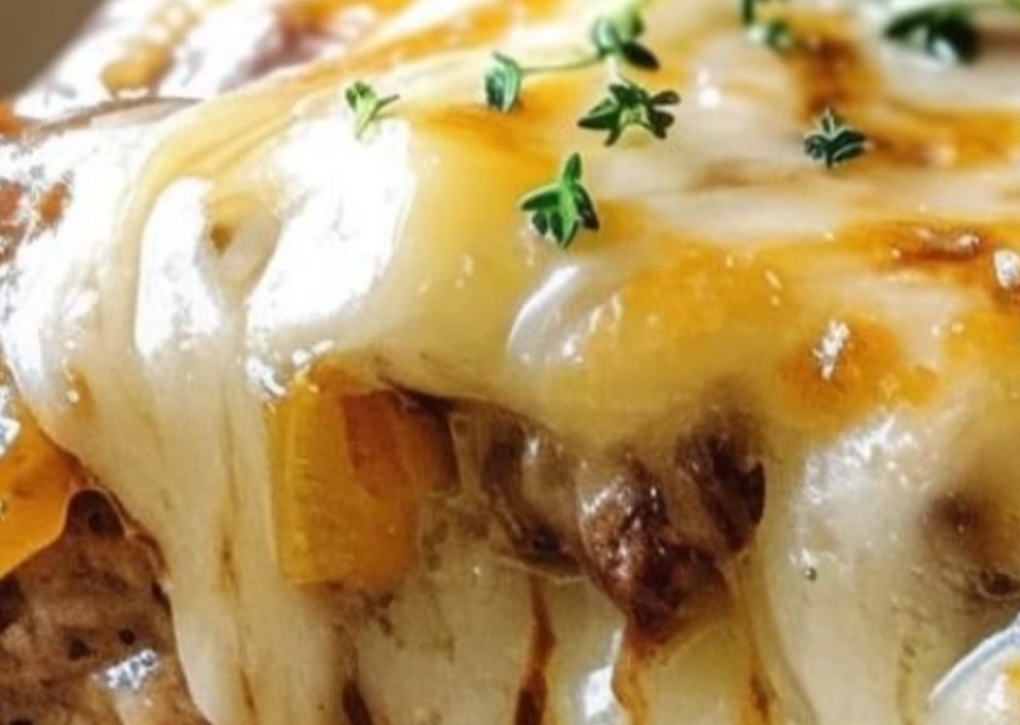 Melt butter in a skillet over medium heat. Add the thinly sliced onions and cook them slowly, stirring occasionally, until they become caramelized, which takes about 20-25 minutes. Once caramelized, pour in the beef broth and continue cooking until most of the liquid is absorbed.