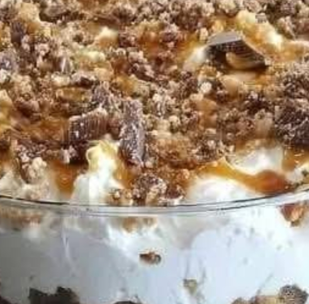 It’s all about the layers—fudgy brownie chunks, silky chocolate pudding, fluffy whipped topping, and crushed candy bars all stacked together to form a spoonful of pure bliss. The magic happens when the layers meld together in the fridge, creating a dessert that’s cool, creamy, and completely addictive.