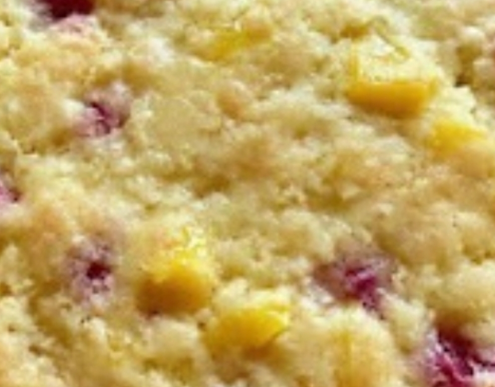 In a large bowl, combine the flour, sugar, and fruit cocktail (with juice) until just mixed.