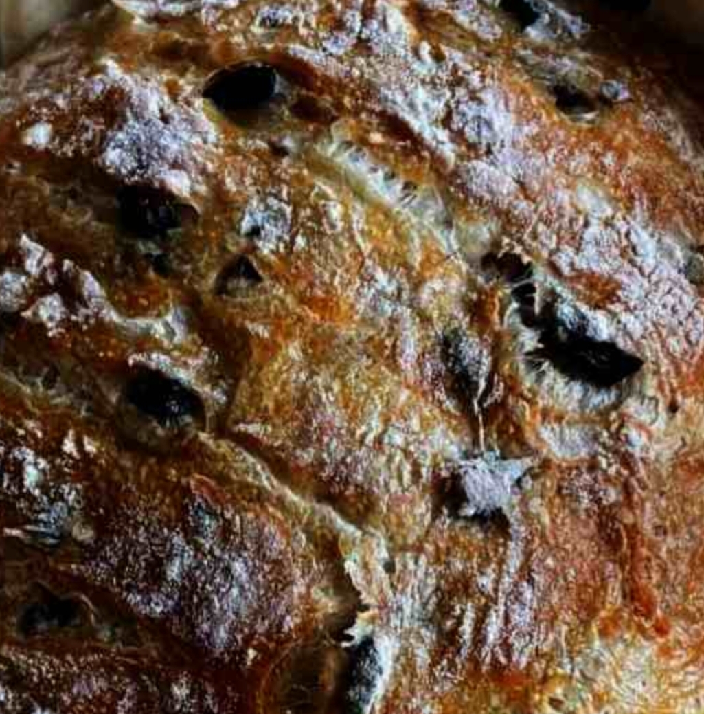 - In a large mixing bowl, combine flour, yeast, and salt. Add water and olives, stirring until a shaggy dough forms.