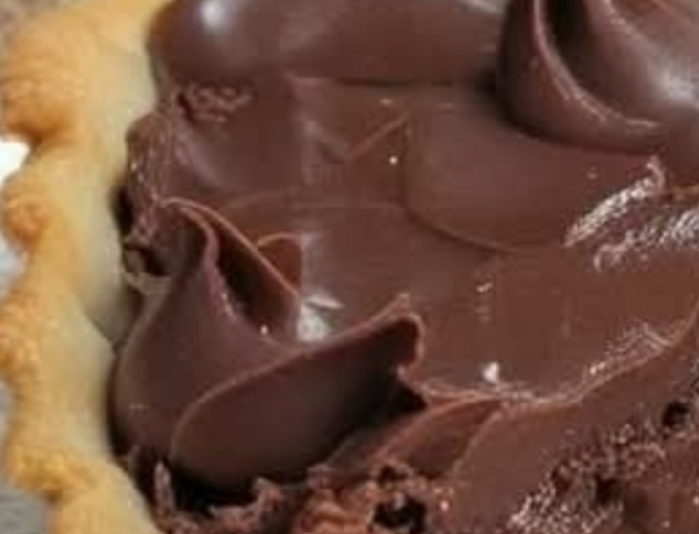 Pour the chocolate filling into the pre-baked pie crust and spread evenly.