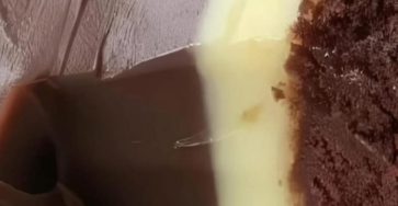 White German chocolate cake with a cheesecake center