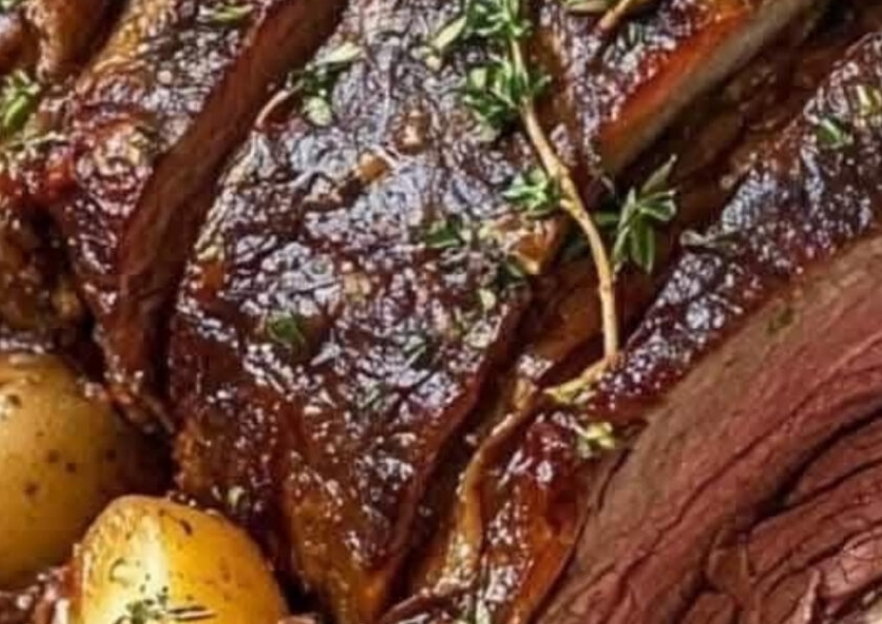 Slice the roast and serve it along with the vegetables. Drizzle with the thickened gravy, if desired.