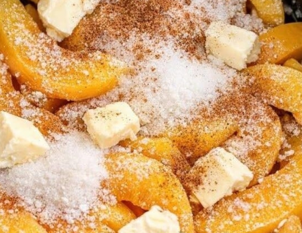 Spread canned peaches and these 3 ingredients in slow cooker for a warm dessert people scrape the spoon for